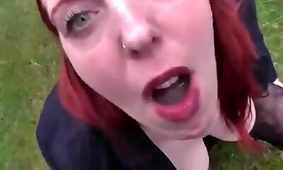 Red-haired Deutsch milf works that big cock with her ass and mouth in the park