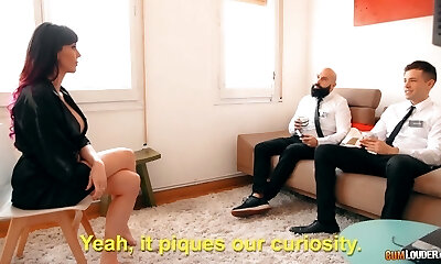 Two fortunate guys finally get to fuck amazing Rebecca Linares together