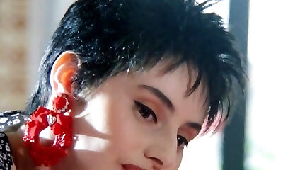 Depraved slim Chinese dame stripteases in deserted house and flashes hairy pussy