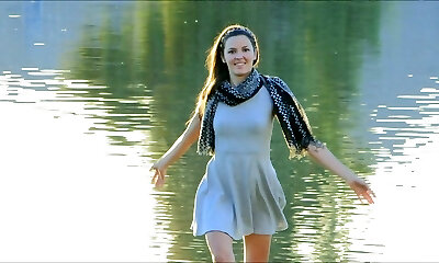 Horny brunette lets the yellow liquid flow out and she's so molten