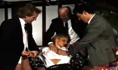 A super-hot light-haired German babe gets fucked by three loaded and hard cokcs