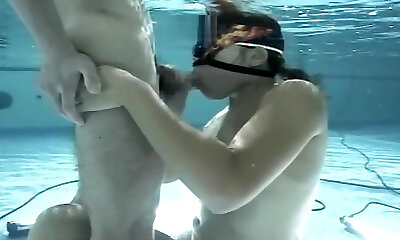 Orgy underwater with brunette