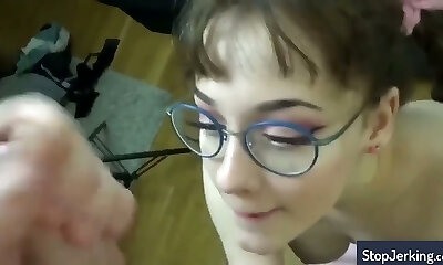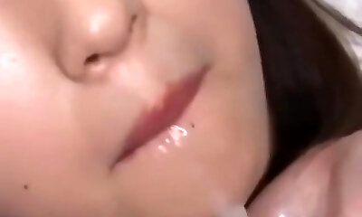 Skilled Unexperienced gives best blowjob and begs for mouthful - Close Up