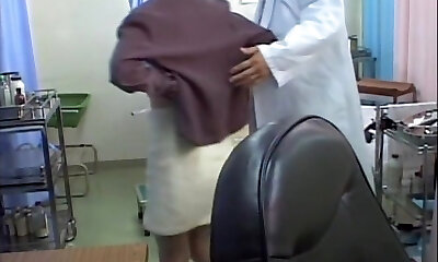 Kinky doc dildo penetrates Asian in the medical office
