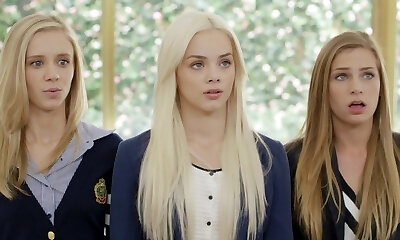 Slutty towheaded teacher is softly rubbing and sucking a black dick, while no one is watching her