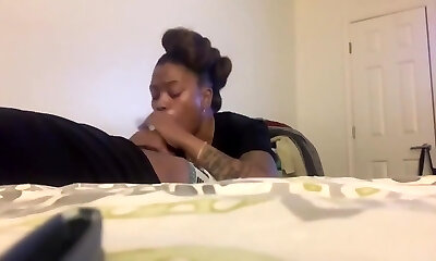 Kinky tattooed dark-hued nympho exposed her really huge booty and big tits