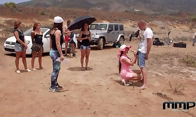 Czech sex industry star Mea Melone gives a blowjob and gets fucked on a camper hood