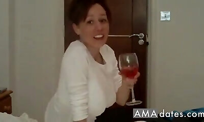 Sexy brunette wifey with nice boobs satisfy herself all alone